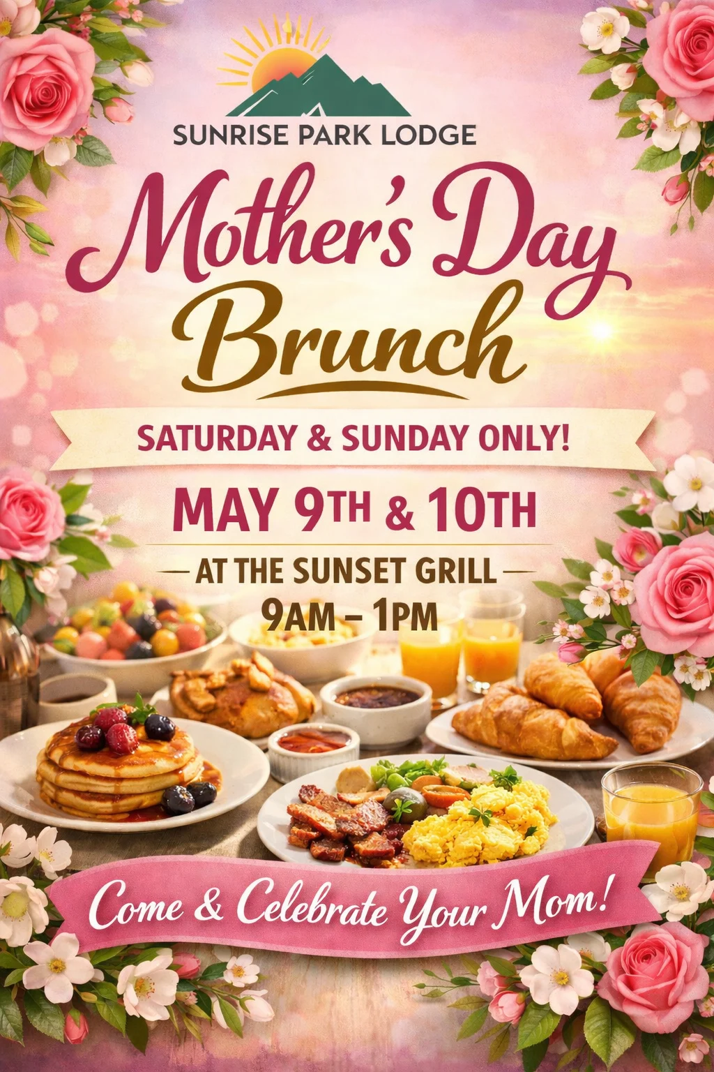 Mother’s Day Brunch + Add to Google Calendar + iCal / Outlook export 00 days 00 hours 00 minutes 00 seconds Date May 09 - 10 2026 Time 09:00 - 13:00 Category Sunrise Share this event
